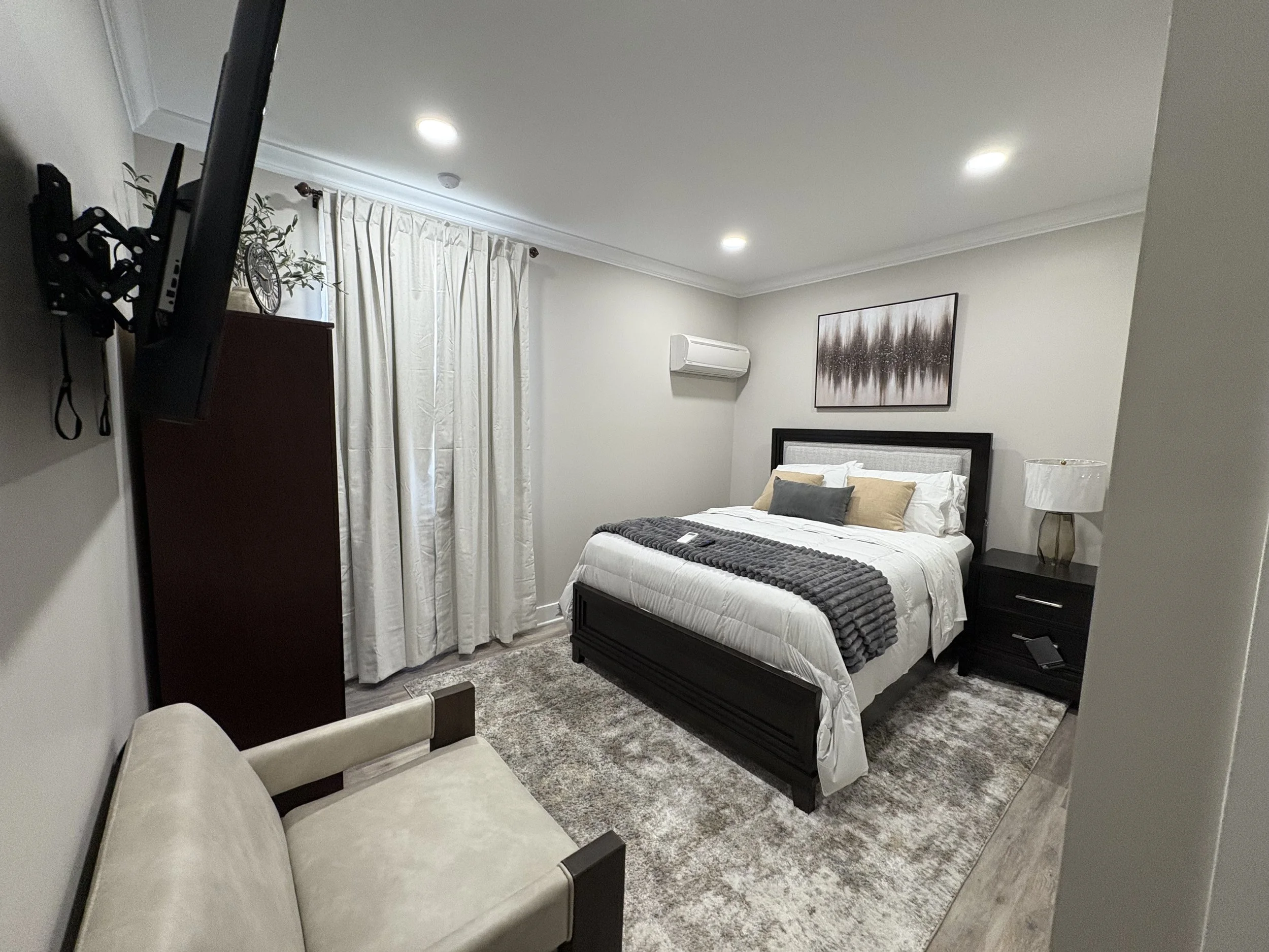 Our spacious suite offers a king-sized bed, a pull-out couch, a private bath with shower and tub, and a separate sitting area—perfect for families, couples, or special occasions. Enjoy all the comforts of home plus a breakfast voucher for local dining.